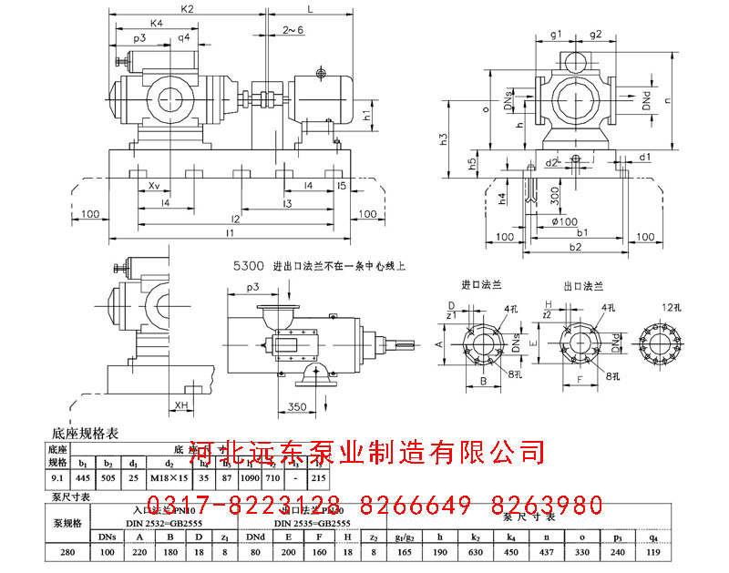 | 原(yuan)油輸送泵SNH280R43U12.1W21三(san)螺杆泵安裝(zhuāng)尺寸圖 |